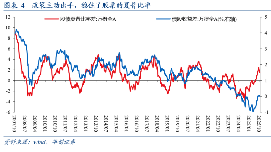 其次,我们提示权益资产波动率后续或系统性降低,权益资产配置性价比客观提升。我们前期报告《中国股票配置价值已打开》发现,2025年由于资本市场的稳市政策主动出手,提前降低了股票波动率,也就等于提前抬升了股票的风险调整后收益,因此权益资产的配置价值明显改善。正如潘行长会上表述:“在宏观审慎管理政策体系方面,人民银行从多个维度进行了探索推进…八是加强市场预期管理。当金融市场发生较大幅度的波动时,主动发声,及时校正市场‘羊群效应’,坚定维护股市、债市、汇市等金融市场稳定。”