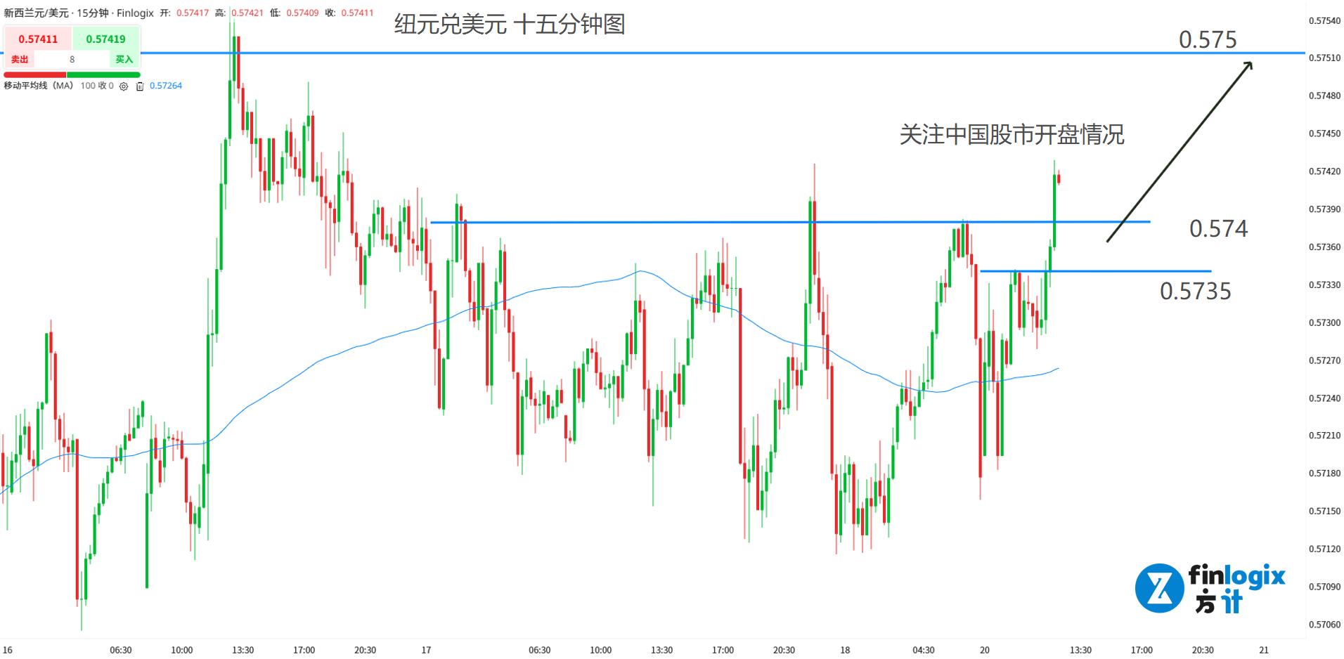 日内交易策略:(趋势跟随)0.5735-0.574顺势跟涨