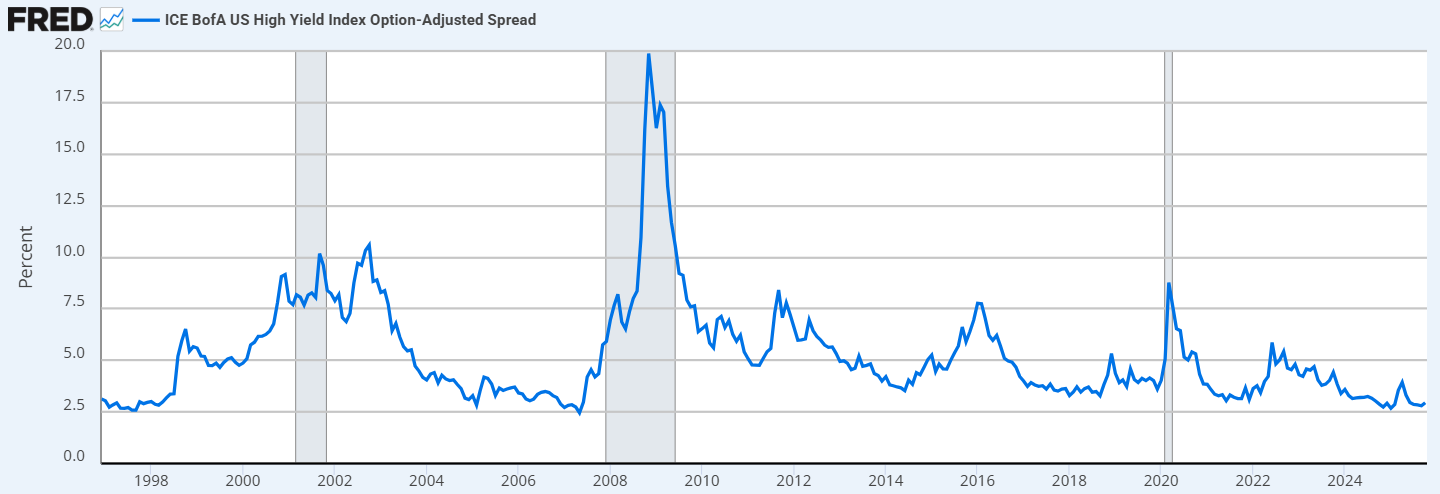 先说一下目前美国的信用市场,可谓是极其火爆,投资级债券利差和高收益债券利差都处在历史最低点,说明市场处在极度贪婪阶段。这点同样体现在隔夜回购利率市场,SOFR利率近一个月来多次突破美联储联邦利率的上限。这说明美国银行业的准备金已经接近最低下限,因此行间拆借时所采用的利率超过了准备金利率(IORB)。鲍威尔因此在本周的讲话后宣布暂停缩表,因为流动性出现压力。