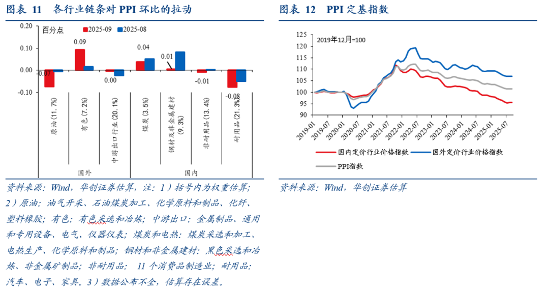 从同比来看,据统计局解读,“我国各项宏观政策效果持续显现,一些行业价格呈现积极变化。一是全国统一大市场建设纵深推进带动相关行业价格同比降幅收窄。…煤炭加工、黑色金属冶炼和压延加工业、煤炭开采和洗选业、光伏设备及元器件制造、电池制造、非金属矿物制品业价格降幅比上月分别收窄8.3个、3.4个、3.0个、2.4个、0.5个和0.4个百分点,上述6个行业对PPI同比的下拉影响比上月减少约0.34个百分点。二是产业结构升级和消费潜力释放带动相关行业价格同比上涨。…飞机制造价格同比上涨1.4%,电子专用材料制造价格上涨1.2%,废弃资源综合利用业价格上涨0.9%,可穿戴智能设备制造价格上涨0.1%。提振消费等政策效应继续显现,品质化、升级类消费需求释放,工艺美术及礼仪用品制造价格上涨14.7%,运动用球类制造价格上涨4.0%,营养食品制造价格上涨1.8%。”