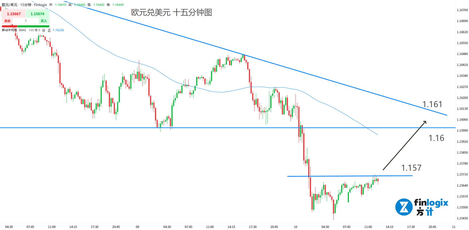 技术面:100均线向下,多单需要设好止损。相比美日,欧美的超跌幅度不算大,因此更需要配合关键阻力突破。1.157是关键颈线阻力,一旦突破则欧美再上方的阻力便是1.16附近。