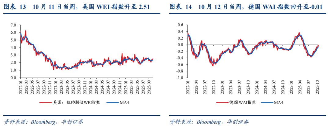 美国经济活动指数中枢回升。10月11日当周,美国WEI指数2.51(四周移动平均为2.35),上周为2.45(四周移动平均为2.3)。