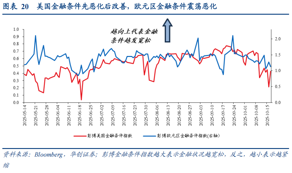 1、金融状况:美国金融条件先恶化后改善,欧元区金融条件震荡恶化