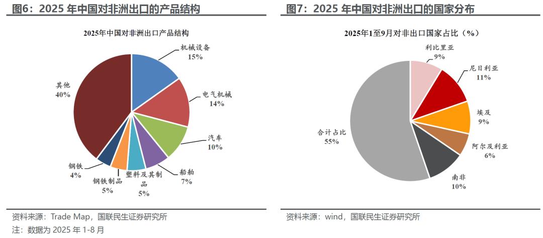 另辟蹊径:非洲的新“增长极”。我们在之前的报告中,我们详细阐述了中非贸易的主要增长特点,在非洲经济工业化的动力下,中国对非洲的贸易越来越多从传统的基建、采矿向制造业转向:机械、电气、汽车、船舶等成为越来越重要的增长点。