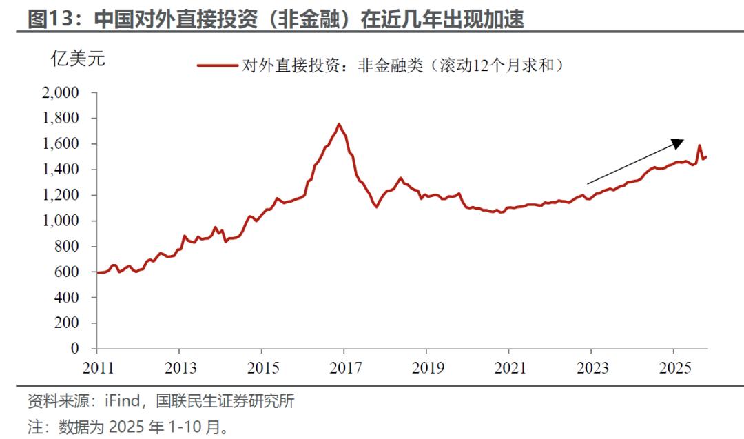 第三是对外投资和企业出海的“再加速”。这一方面是打造更加具有韧性、更好融入全球的供应链体系,另一方面则出海投资、建厂也会客观上带动相关机器设备和中间品的出口增长。